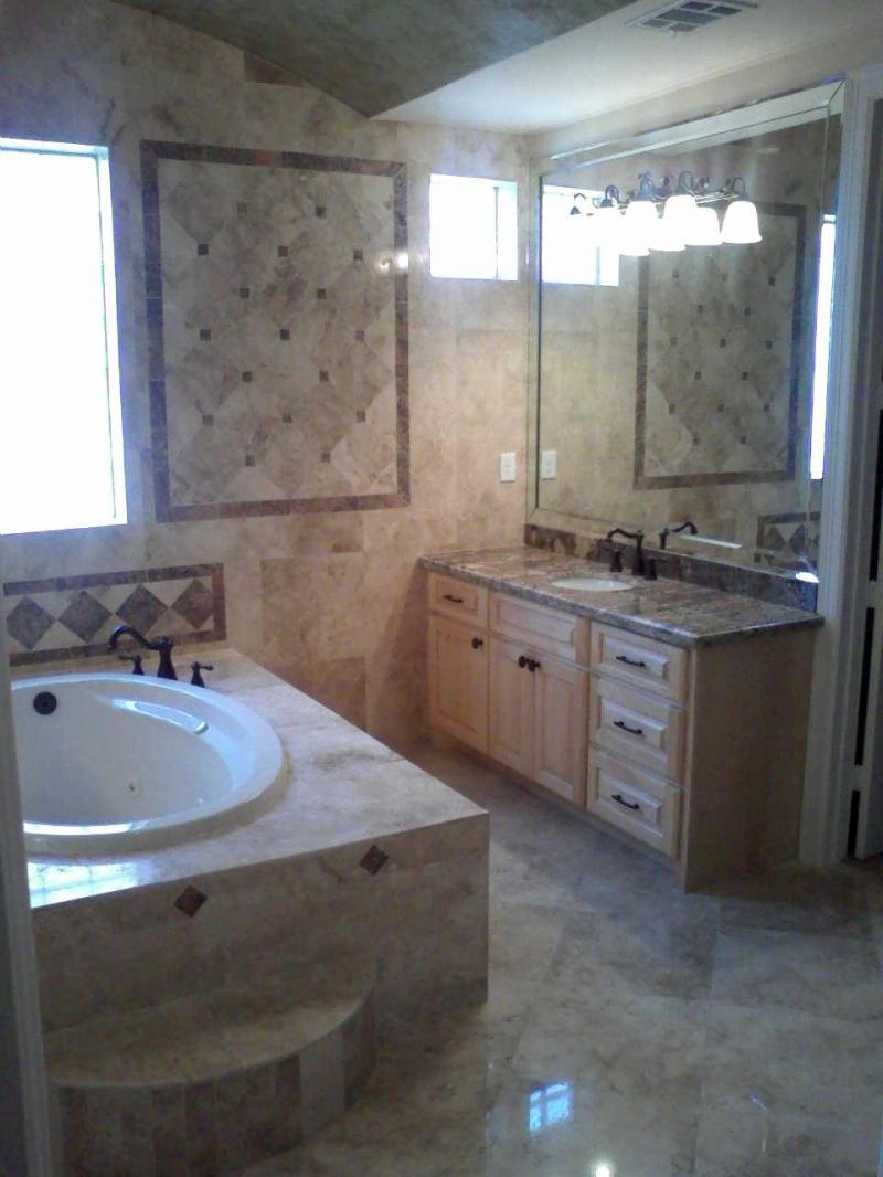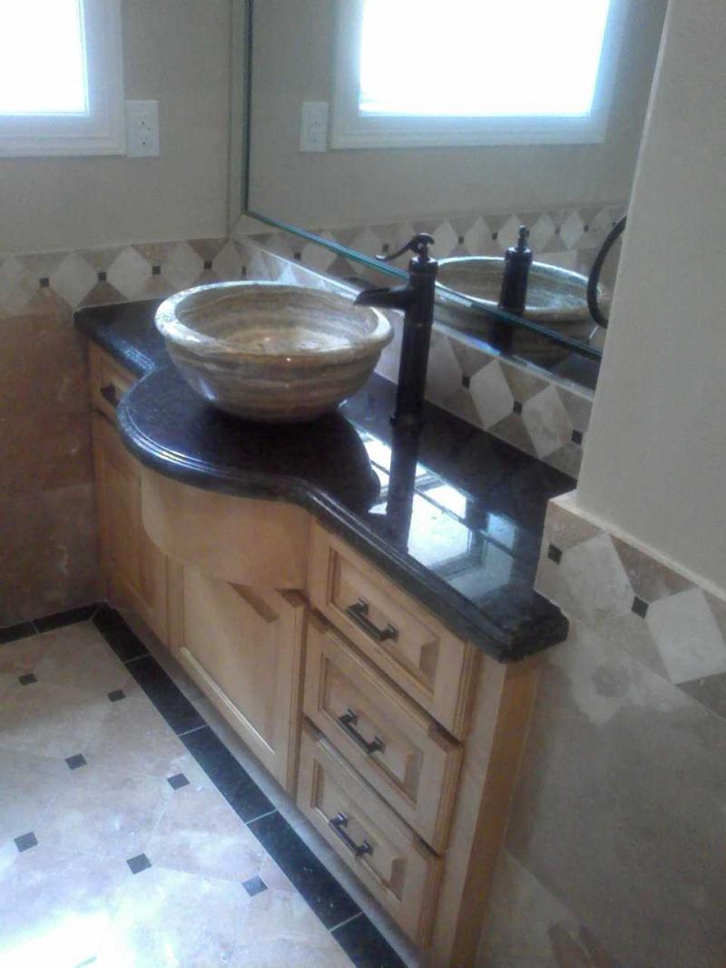 We can also assist you with your choice of design to use the same countertop’s stone with the flooring tiles.